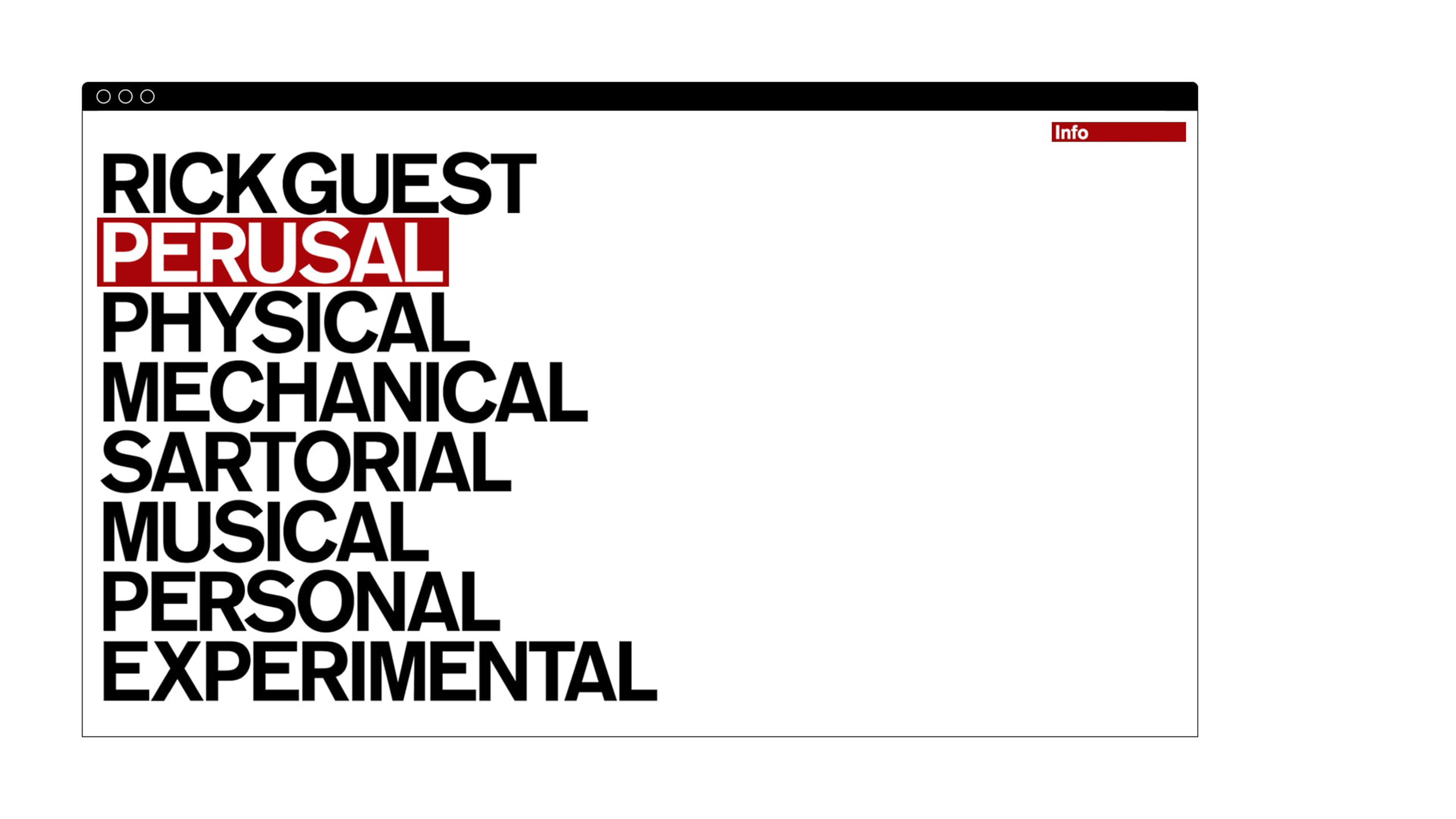 To effectively showcase the variety of imagery available, we made sure the website was flexible. The homepage features a bold typographic menu that sets the tone for the entire site.